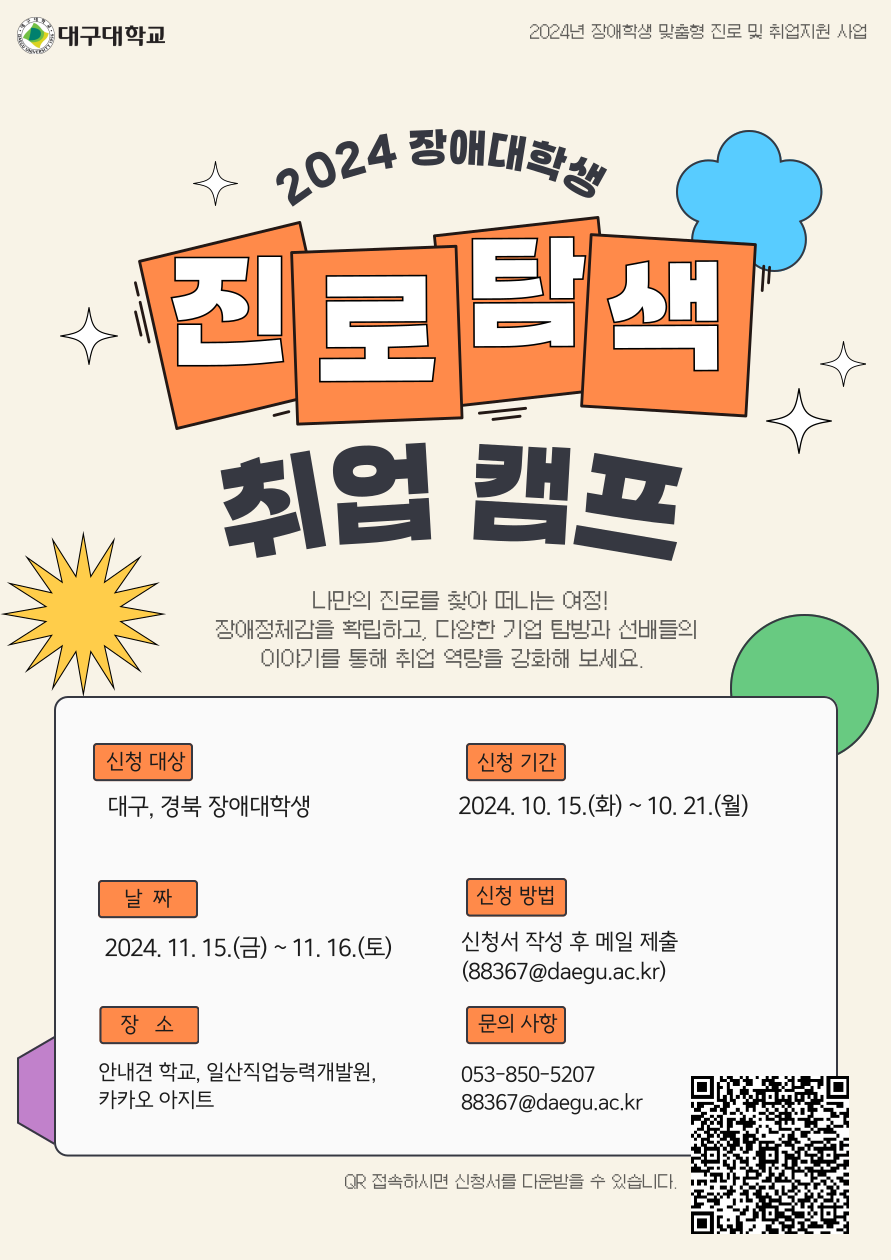 안녕하세요, 장애대학생 진로탐색 및 장애정체감 교육에 많은 관심과 지원을 보내주셔서 진심으로 감사드립니다.