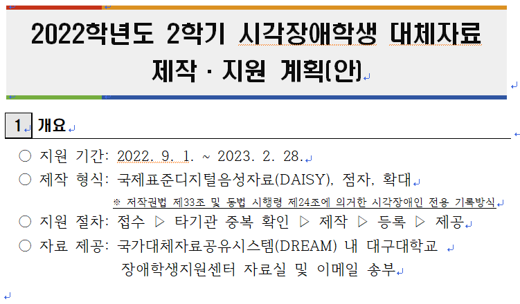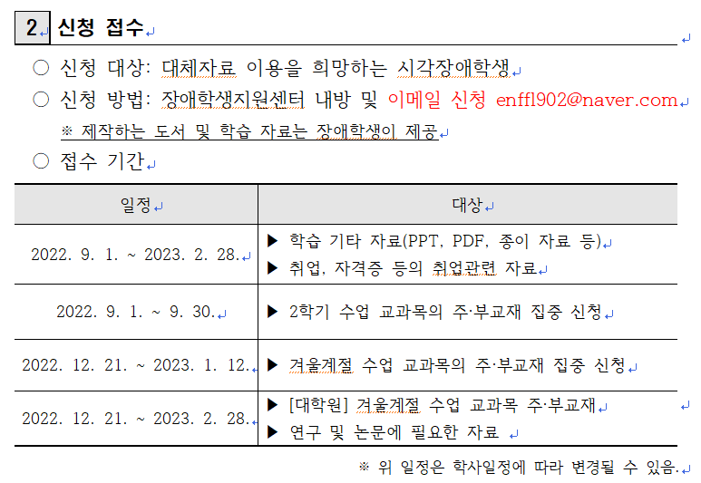 2022학년도 2학기 시각장애학생 대체자료 제작·지원 신청 안내