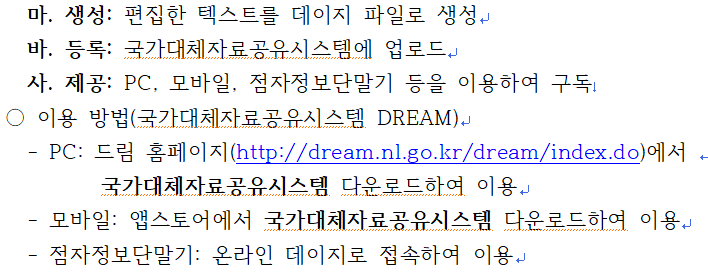 -. 점자정보단말기: 온라인 데이지로 접속하여 이용