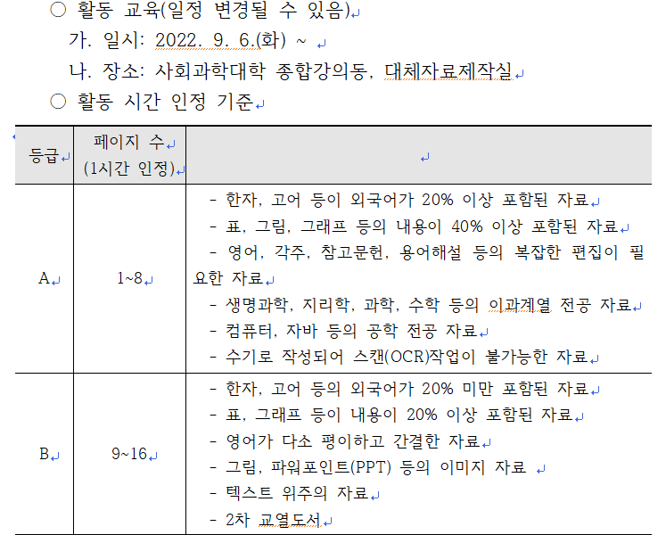 -. 장소: 사회과학대학 종합강의동, 대체자료제작실
