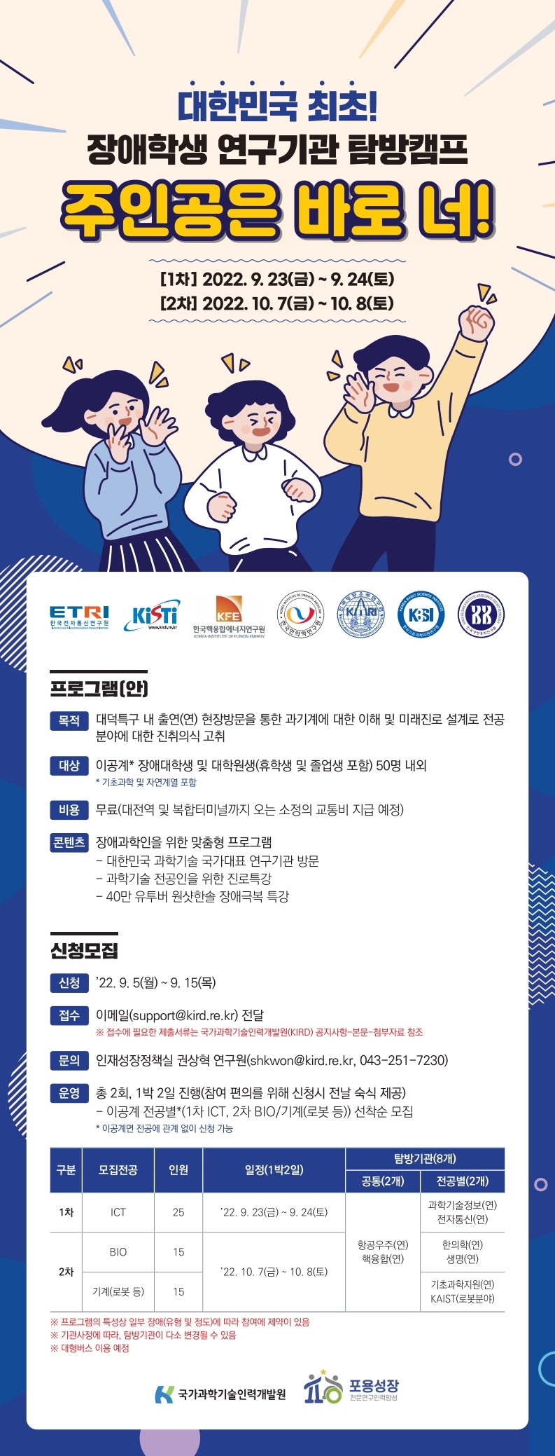 KIRD『국가과학기술연구원』 에서 주관하는 [2022 포용성장 전문연구인력 양성사업-장애대학생 출연(연)