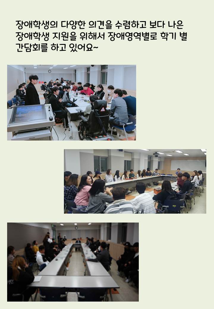 장애학생의 다양한 의견을 수렴하고 보다 나은 장애학생 지원을 위해서 장애영역별로 학기 별 간담회를 하고 있어요~