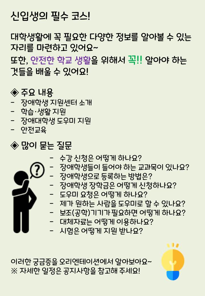 신입생의 필수 코스! 대학생활에 꼭 필요한 다양한 정보를 알아볼 수 있는 자리를 마련하고 있어요.